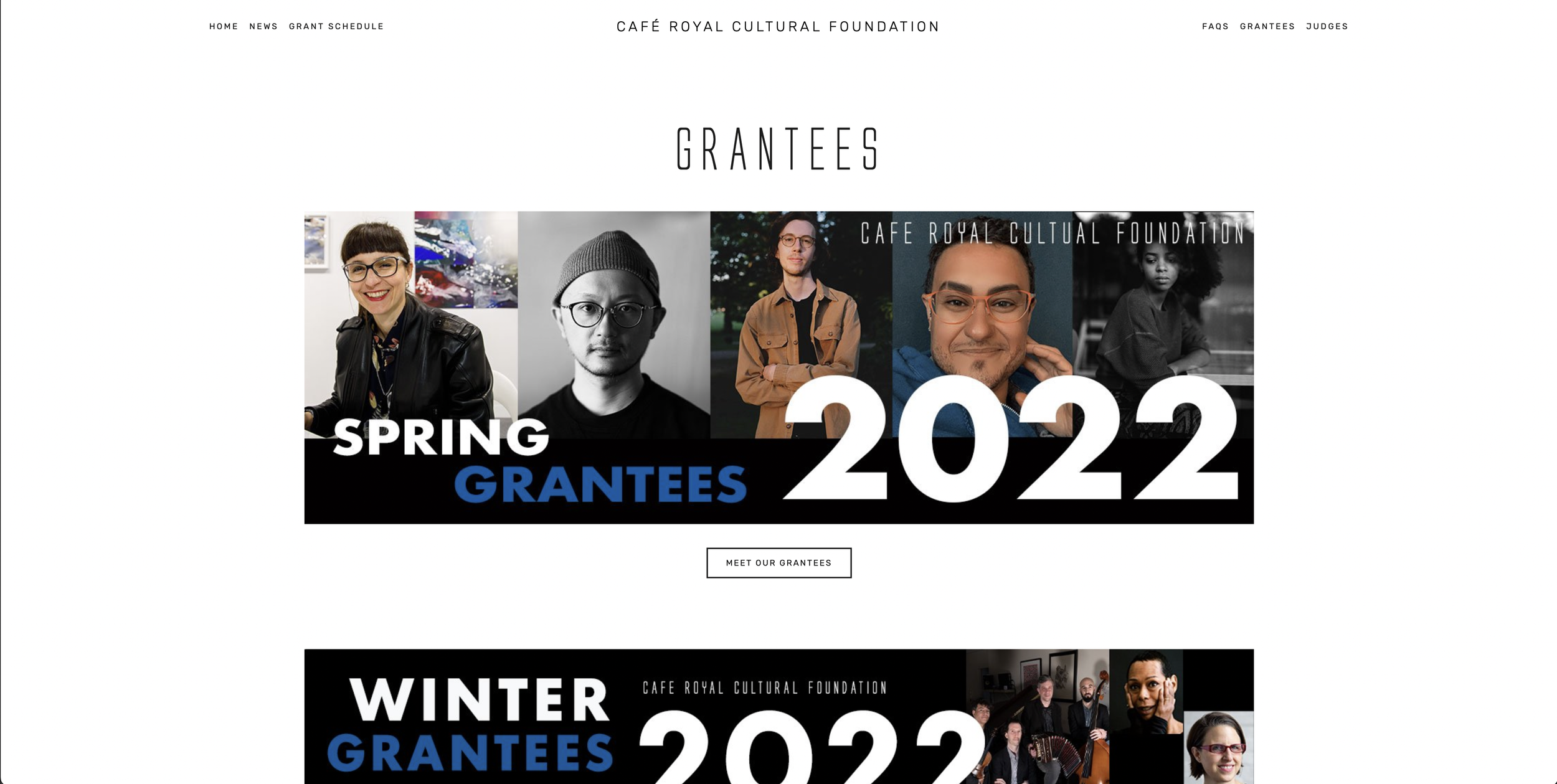 web Development I have made updates to the grantees page of the cafe royal website, as well as all of the seasonal banners and most of the later year grantee visuals Website for raul midon Worked on this site collaboratively with Istros Media Corp Website for the roots agency